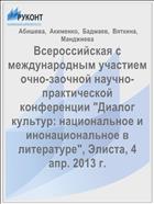 «Диалог культур: национальное и инонациональное в литературе», Всероссийская с международным
