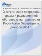 МЕТЕОРОЛОГИЯ И ГИДРОЛОГИЯ 2005 ¹3 УДК 504.3.054<<2004.12>>(047)(47+57) О загрязнении природной среды и радиационной обстановке на территории Российской Федерации в декабре 2004 г.* А. М. Ованесянц, Т. А. Красильникова, Б. С. Летников Загрязнение природной среды в результате аварий Атмосферный воздух. <...> В декабре 2004 г. сведений об авариях, вызвавших загрязнение атмосферного воздуха в населенных пунктах, не поступало. <...> Стационарной сетью наблюдений повышенных уровней загрязнения атмосферного воздуха, обусловленных аварийными ситуациями, не зарегистрировано. <...> В декабре 2004 г. случаев аварийного загрязнения водных объектов не отмечено. <...> Семеновка (Кинель-Черкасский район Самарской области) в результате порыва нефтепровода “Козловка — УКПН-2”, принадлежащего ООО “Самаранефтегаз”, произоАтмосферный воздух. <...> В декабре 2004 г. случаев экстремально высокого загрязнения атмосферного воздуха не зарегистрировано (в декабре 2003 г. также не зарегистрировано). <...> В декабре 2004 г. на территории Российской Федерации экстремально высокое загрязнение поверхностных вод веществами 1-го и 2-го классов опасности не зарегистрировано (в декабре 2003 г. отмечалось 2 раза на двух водных объектах). <...> Экстремально высокое загрязнение поверхностных вод веществами 3-го и 4-го Атмосферный воздух. <...> Случаи высокого загрязнения (ВЗ) атмосферы веществами 2-го класса опасности зарегистрированы: сероводородом — в Мирном (6 случаев, * Официальная информация Росгидромета. <...> 30 декабря на 51-м километре нефтепровода “Дружба-1” в районе г. Чапаевск (Безенчукский район Самарской области) в результате несанкционированной врезки произошел разлив на грунт около 10 м3 нефти. <...> Экстремально высокое загрязнение природной среды классов опасности зарегистрировано 29 раз на 20 водных объектах (в декабре 2003 г. — 29 раз на 12 водных объектах). <...> Всего экстремально высокое загрязнение поверхностных вод зарегистрировано 29 раз на 20 водных объектах. <...> Пеpечень случаев экстремально высокого <...>
