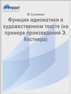 № 6 М.Г. Сулимова ФУНКЦИИ ИДИОМАТИКИ В ХУДОЖЕСТВЕННОМ ТЕКСТЕ (НА ПРИМЕРЕ ПРОИЗВЕДЕНИЙ Э. КЕСТНЕРА <...> ) Статья посвящена функционированию идиом в произведениях немецкого писателя Эриха Кестнера, представителя литературного направления «Новая вещественность». <...> Рассмотрены основные функции фразеологизмов, установлен ряд закономерностей, описывающих их распределение по произведениям разных жанров, охарактеризована роль лексико-семантических групп идиом в создании единства художественного текста. <...> В 1928 г. выходят его первый сборник стихов “Herz auf Taille” и первый роман для детей — “Emil und die Detektive”, в 1931 г. появляются роман для детей “Pьnktchen und Anton” и роман для взрослых “Fabian”, а в 1933 г. — детская повесть “Das fl iegende Klassenzimmer”. <...> Кестнер работает корреспондентом нескольких газет (“Berliner Tageblatt”, “Vossische Zeitung”, “Die Weltbьhne”). <...> По мнению большинства исследователей, к началу 1930-х годов стиль Кестнера сформировался окончательно. <...> Кестнер «вторит тону среды, тону людей, с которыми говорит» [Bossmann, 1955: 76]. <...> 187 Чтобы отразить жанровое и тематическое разнообразие творчества Кестнера 1930-х и 1940-х годов, были проанализированы произведения разных жанров. <...> В ходе работы были рассмотрены социально-критический роман “Fabian”, дневник военных лет “Das Blaue Buch”, сатирическая драма “Die Schule der Diktatoren”, детские повести “Das doppelte Lottchen”, “Emil und die Detektive”, “Das fl iegende Klassenzimmer”. <...> Анализ этих произведений позволяет, с одной стороны, выявить черты, характерные для всего творчества писателя, с другой — определить, какое влияние на стилистику конкретного текста оказывают замысел и жанр произведения. <...> Методом сплошной выборки было установлено, что собственно идиомы составляют основную часть фразеологизмов, используемых автором (“Fabian” — 43%, “Das fl iegende Klassenzimmer” — 47%, “Drei Mдnner im Schnee” — 56%, “Emil und die Detektive” — 42%, “Schule der Diktatoren” — 69%, “Das blaue Buch” — 48%). <...> Настоящая статья описывает общие закономерности использования идиоматики в произведениях Кестнера, исходя из <...>