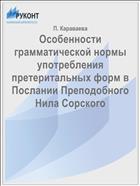 № 2 П.Ю. Караваева ОСОБЕННОСТИ ГРАММАТИЧЕСКОЙ НОРМЫ УПОТРЕБЛЕНИЯ ПРЕТЕРИТАЛЬНЫХ ФОРМ В ПОСЛАНИИ ПРЕПОДОБНОГО НИЛА СОРСКОГО: ЧЕТЫРЕ РЕДАКЦИИ ОДНОГО ТВОРЕНИЯ Статья посвящена исследованию главных особенностей индивидуальных грамматической нормы Преподобного Нила Сорского в использовании форм прошедшего времени глагола. <...> В работе описывается характер развития грамматической нормы старорусского извода церковнославянского языка в использовании форм прошедшего времени (аориста, имперфекта, перфекта, плюсквамперфекта). <...> Исследование базируется на материале церковнославянских рукописей, которые были созданы в конце XV – начале XVI в.: четырех редакций Послания Герману Подольному, которые были созданы Преподобным Нилом Сорским и его учениками на церковнославянском языке старорусского извода. <...> Общая цель настоящей работы состоит в описании особенностей использования прошедших времен глагола редакциях Послания, созданных в конце XV – начале XVI в. и выявлении специфики нормализаторских установок Преподобного Нила Сорского и его учеников. <...> Nilus of Sora in the use of past tenses. <...> Nilus of Sora and his followers in the Church Slavonic language. <...> Nilus of Sora and his disciples tried to establish. <...> 145 Нашей задачей в предлагаемой статье является сравнительный исторический анализ употребления форм прошедшего времени глагола в Послании великого старца Нила к Герману Подольному (в нескольких списках). <...> За единицу описания мы принимаем значение прошедшего времени, выраженное в формах аориста, имперфекта, перфекта или плюсквамперфекта, реализуемое простой или сложной формой претерита непосредственно в рамках определенного контекстуального окружения, исходя из того, что названные глагольные формы отсутствуют в живом языке и являются для Нила Сорского знаком принадлежности к книжному тексту. <...> В настоящее время ученые располагают сведениями о бытовании во множестве списков трех больших посланий Нила Сорского (к Герману Подольному, Вассиану Патрикееву и Гурию Тушину <...>